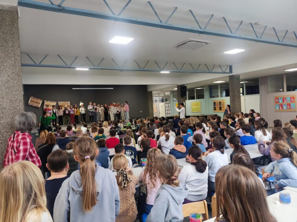 Učenici nižih razreda koji uče njemački jezik okupili su se ispred školske pozornice kako bi zajedno proslavili ovaj poseban dan, a središnji dio programa bio je igrokaz „Sankt Martin“ koji su sami osmislili i pripremili učenici 2.a i 3.a razreda. Kroz kratku predstavu na njemačkom jeziku, učenici su prikazali poznatu priču o rimskom vojniku Martinu koji je svoj plašt podijelio s prosjakom, simbolizirajući dobrotu, suosjećanje i nesebičnost.